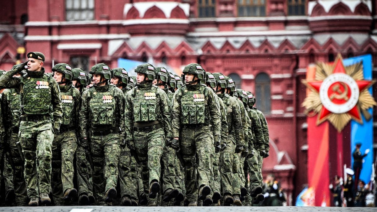 Nyitókép: az orosz–ukrán háborúban harcoló orosz katonák vonulnak fel a győzelem napi katonai díszszemlén a moszkvai Vörös téren 2024. május 9-én (fotó: AFP/Alekszandr Nyemjenov)