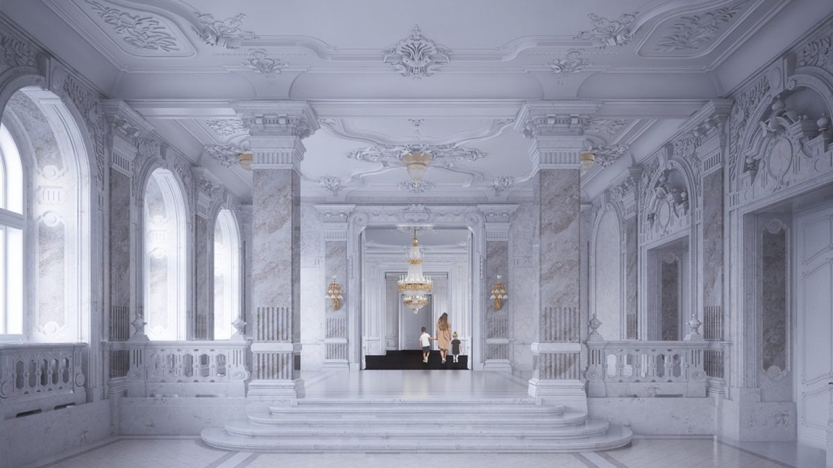 Nyitókép: az előcsarnokról közölt rekonstrukciós látványterv (forrás: Nemzeti Hauszmann Program)
