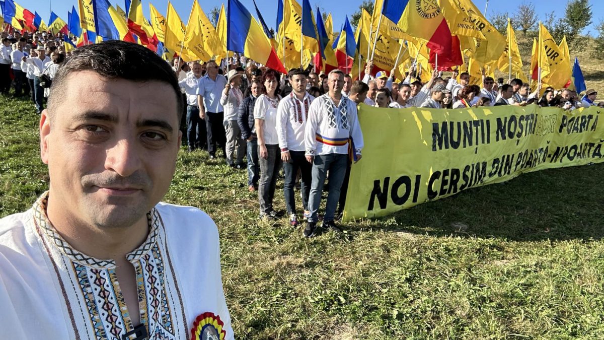 Nyitókép: George Simion román zászlók előtt (forrás: Facebook)