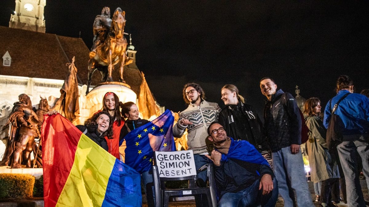 Nyitókép: Kolozsváron a támogatók spontán ünneplést tartanak a Mátyás-szobornál, a tér közepére egy „George Simion hiányzik” feliratú széket rakva (fotó: Válasz Online/Vörös Szabolcs)
