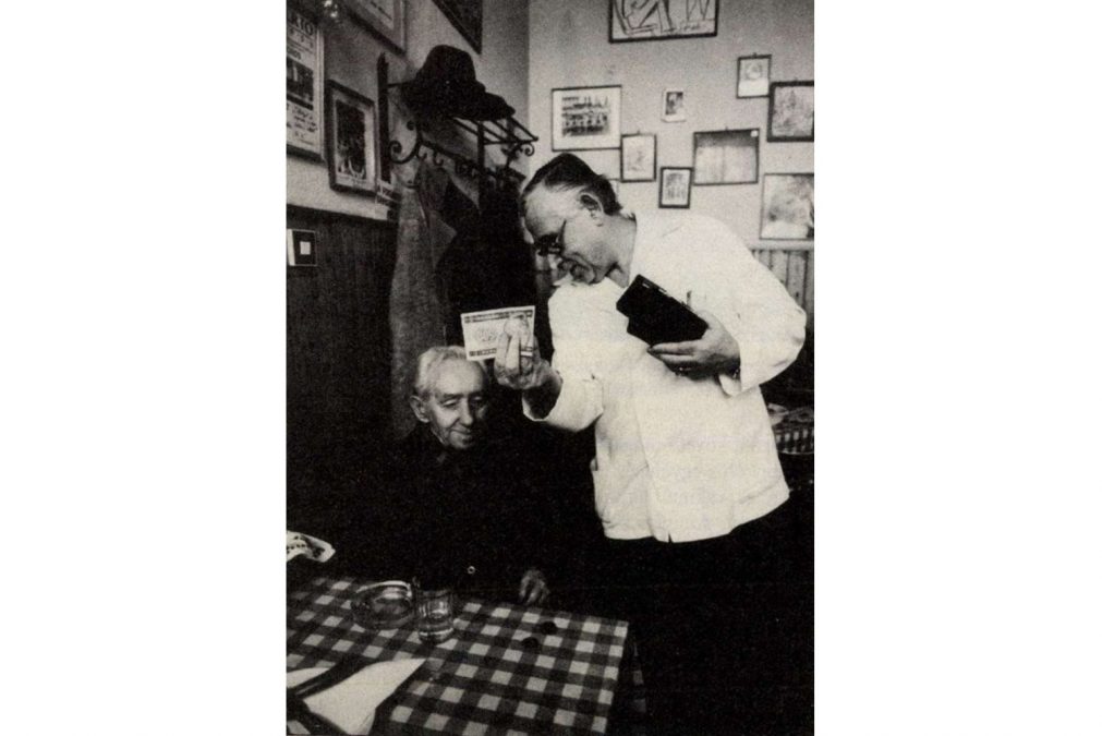 A sort Marcello Mastroianni nyitotta meg, aki 1987-ben járt itt, amikor Sándor Pálnak a pesti Broadwayről szóló filmjét, a Miss Arizonát forgatták Budapesten az olasz sztár és Hanna Schygulla főszereplésével. A látogatásról Szilágyi György írt beszámolót a Ludas Matyi című lapba „Marcello Mastroianni sóletet ebédelt Pesten” címmel. Ez a cikk valószínűleg a Kádár-mítosz egyik elindítója, bár az kiderül belőle, hogy a helyet addigra már rég felfedezte a budapesti színházi világ, mert Szilágyi sok színészt, rendezőt említ „G. úr” (vagyis Garami Tibor) törzsvendégeként. Mastroianni február 23-án, hétfőn 3/4 2-kor érkezett, és negyedmagával ebédelt meg a cikkben szolidnak nevezett étkezdében: „Nagyon szolid. Ez meglátszik a berendezésen is. Jobb napokat látott asztalok és székek, reumás lábakkal. Az evőeszközök puritán egyszerűsége teszi teljessé a harmóniát.”