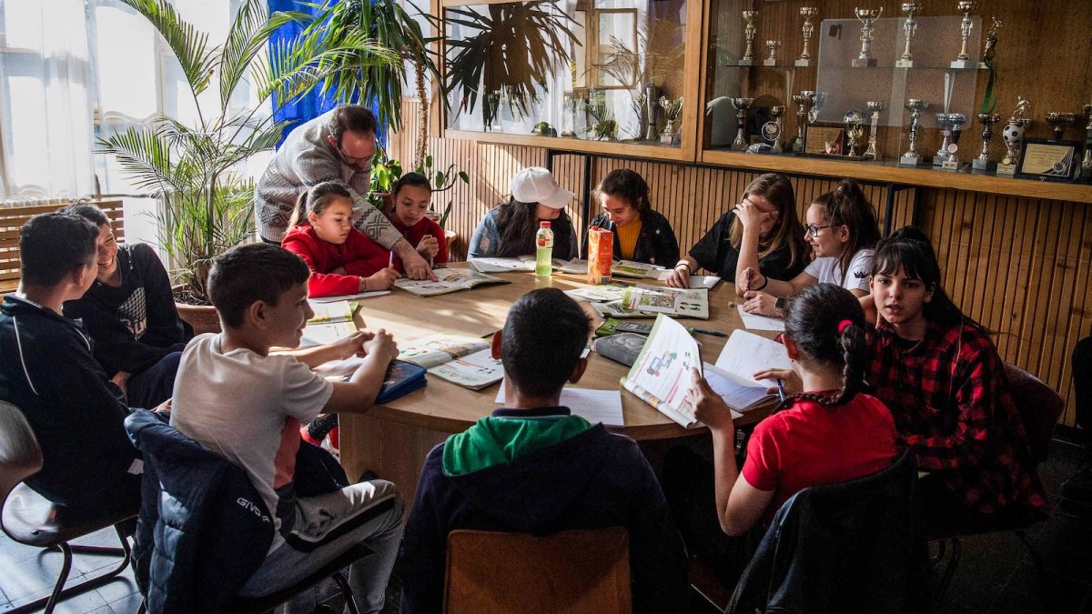 Nyitókép: Ábrahám Gergő angoltanár magyaráz óráján az ukrajnai háború elől Magyarországra menekült két gyereknek (b4, b6) a fővárosi XV. kerületi Czabán Általános Iskolában 2022. március 28-án (fotó: MTI/Máthé Zoltán)