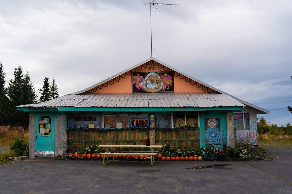 Utunk Nikolaevskbe lassabb, mintha én vezetnék, mert gyakori megállókat iktat be. Ilyenkor mindig egy-egy orosz utcanevet mutat, de az az érzésem, hogy inkább magának szeretné fotózni. Hiába van képe mindegyikről, újakra van szüksége az olyan utcanévtáblákról, mint Dubova, Ryabina, Baronov, Kalifornsky vagy épp Tovarish. A félszigeten ezek az apróságok mind közvetlenül az orosz időszak tanúi. Nikolaevsk, ahová megyünk, kivétel, mert csak 1968-ban alapították. Nem úgy Ninilchik. Ezt a kisvárost még a gyarmatosítók alapították, de főleg az alaszkai és az orosz vegyes családok lakták. A 2010-es évek elején még éltek olyan öregek, akik annak az orosz nyelvnek a helyi dialektusát használták, amit két évszázada beszéltek itt. Mára ez tájnyelv elhallgatott.