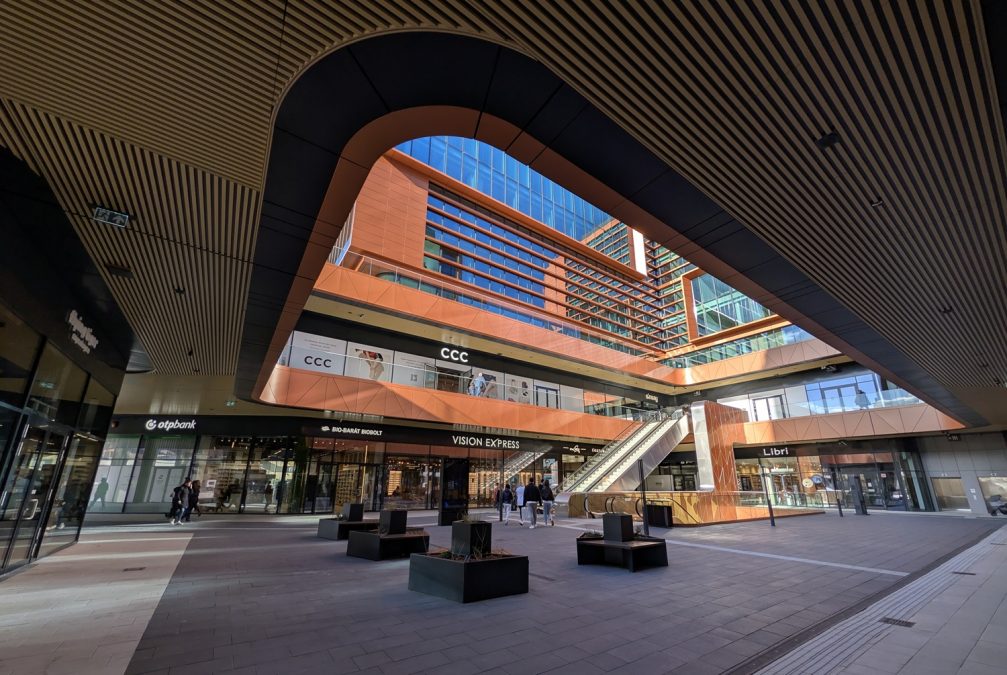 Ez ugyanis egy klasszikus üzletház: üzletek vannak benne kifelé, az utcák irányába és belül is, a városias léptékű udvar körül. Mégpedig pontosan olyan üzletek, amelyek kedvéért az emberek manapság autóba ülnek, és városszéli bevásárlóközpontokba mennek ki, hogy egy helyen bonyolítsanak le minden kötelező feladatot a macskakaja megvásárlásától a heti nagybevásárlásig. Ha valami fenntarthatósági és urbanisztikai szempontból értelmes törekvés, az a környezetet fölöslegesen megterhelő bevásárló-ingázás helyett a jó városközepi alternatívák felkínálása; miközben valódi plázákra, amelyek elszívják az életet a környező vendéglátóhelyek, kisboltok elől, már nincs szükség (és láthatóan mozikra sem, miután a covid és a streaming kettőse a mozizásra súlyos csapást mért).