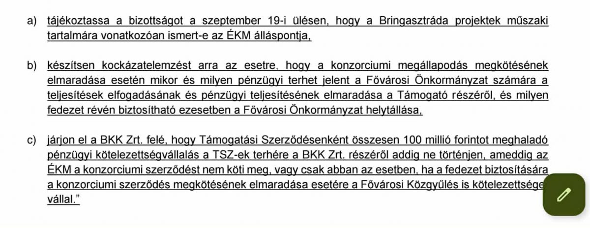 Vitézy szerint ebben a helyzetben úgy kell tekinteni, hogy amíg a kormánytól nem jön világos zöld lámpa, addig nincs is valójában uniós pénz, és a beruházásba csak akkor szabad belevágni, ha azt a főváros anyagi helyzete megengedi és erről a közgyűlés külön dönt. Azt egyébként a szakbizottság sem mondta szeptember elején, hogy az egész projektet fújják le; azt fogalmazták meg, hogy a BKK addig ne vállaljon 100 millió fölötti kötelezettséget, ameddig nincs meg a konzorciumi szerződés vagy a közgyűlés erre nem adott felhatalmazást: