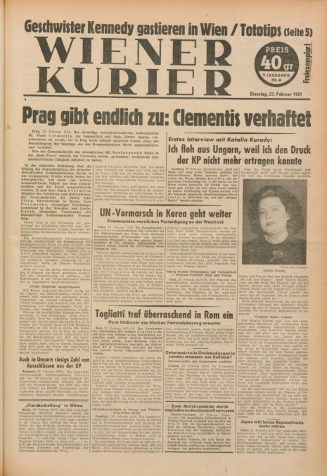 Átjutottak, és ezzel megint Karádyra irányultak a reflektorok. Három nappal később, 1951. február 23-án az osztrák lapok hírül adták a szökésüket. A kommunisták bécsi ügynökei által árgus szemekkel figyelt Wiener Kurier címlapon hozta, hogy „Karády, a filmsztár elmenekült Magyarországról”. Négy nappal később pedig megkezdődött az áradat. Előbb a Wiener Kuriernak adott részletes interjút, majd cikkek százai terítették be az angol nyelvű sajtót. Elmesélte, hogy a leghíresebb magyar színésznőként hogyan jött át az aknazáron kúszott át a vasfüggönyön vágott résen. Polyák Jenő és Téglás Vince egy korábbi útjukon voltak olyan szemtelenek, és le is fotózták az határzáron való átkúszás pillanatát. Karády szavait ezért a lapok fotóval tudták illusztrálni, és volt, ahol az erről készült rajzba a színésznő alakját is belekomponálták (nyitóképünkön).