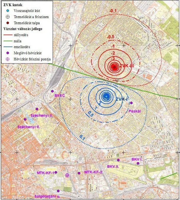 - vízszintje a modell szerint 0,45 m-rel magasabbra kerül, ami a fajlagos hozam alapján elméletileg kb. +169 l/perc hozamnövekedésnek felel meg (más kutak, így különösen a Széchenyi fürdő kútjai esetében érdemi hatás nem várható);