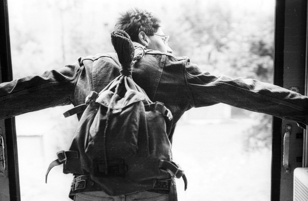 „Ez legyen!” – bár több címlapterv is készült, egyhangúan döntött a szerkesztőség a Fortepanon talált fekete-fehér fotó mellett. Úgy éreztük, jól összefoglalja a bookazine mondanivalóját: fiatal férfi a korszak ikonikus farmedzsekijében, mozgó vonatból tekint ki, hátán karakteres hátizsák. Annyit tudtunk még, hogy a fotó 1989-ben az annus mirabilis-ben, a csodás esztendőben készült. Abban az évben, amikor megdőltek az addig megdönthetetlennek hitt szocialista diktatúrák. Azt gondoltuk, talán jobb is, hogy nincs közelebbi információ sem a képen szereplő személyről, sem a pontos helyszínről: így valami általánosat fejez ki a korszak hangulatából.