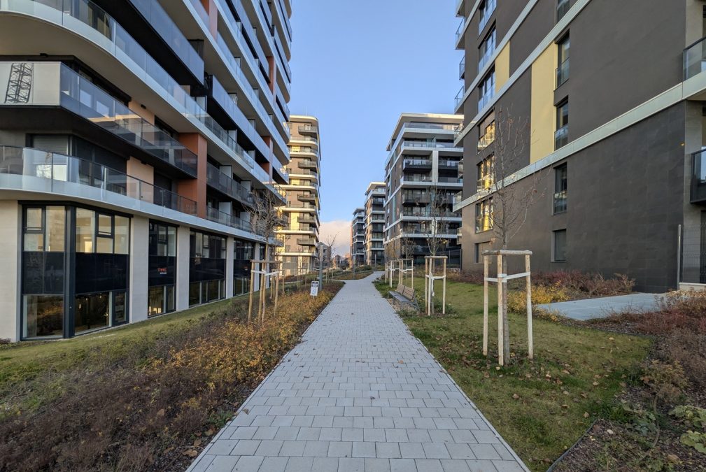 A volt BUSZESZ-területen ugyanis a Budai Promenád első szakasza elkészült. Elindul a Biggeorge által felhúzott tizensokemeletes tornyok között egy nagyvonalúan meghagyott kis terecskével: