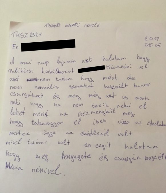 Sajnos ebben a rendszerben nem csak a gyerekek nincsenek biztonságban – állítja Sz. Mária, a Szőlő utcai javítóból Páger miatt távozni kényszerülő szociális munkás, aki megmutatta lapunknak azokat a feljegyzéseket is, amelyeket a mellette kiálló kollégái írattak le a gyerekekkel annak érdekében, hogy védeni tudja magát. Ezekben a feljegyzésekben a gyerekek számolnak be arról a verbális agresszióról, amit az akkori szakmai vezető Máriával szemben megengedett magának. Az asszony végül nem használta fel ezeket, mert a szupervizorával átbeszélve a dolgot arra jutott, hogy bár neki segítségére lennének, a gyerekeknek árthatna ezzel.