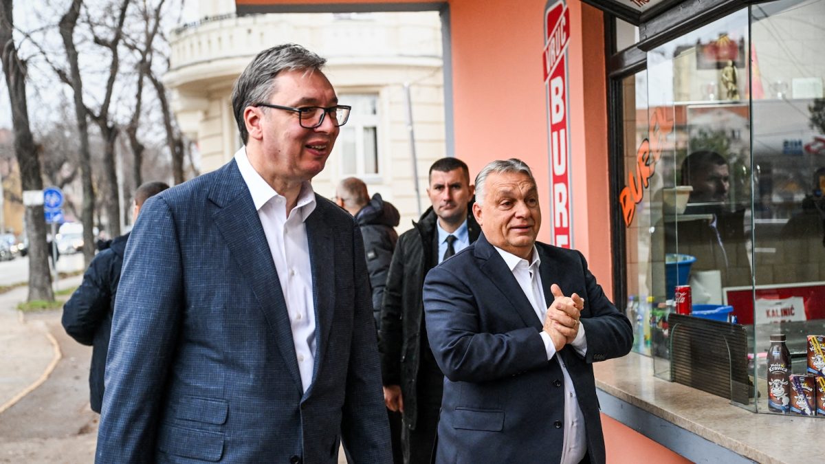 Nyitókép: Aleksandar Vučić szerb elnök burekezni viszi Orbán Viktor Szabadkán 2025. november 27-én (fotó: AFP/Szerbia Elnöki Hivatala/Handout)