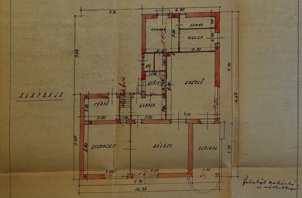 Történetesen egész pontosan tudjuk, hogy ki és mikor építette a házat, ugyanis megvannak az eredeti engedélyes tervek. 1935. március 30-án készítette őket