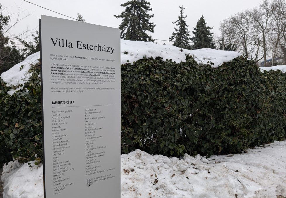 Mindez itt zajlott, e falak között. A házban, amit a bejárat elé frissen kitett tájékoztató tábla meglepő nagyzolással Villa Esterházynak nevez. Nagyon szép ez a „Villa Esterházy”, olyan nagyvonalú, arisztokratikus, nyugati fülnek is jól csengő. „Budapesten, a Villa Esterházy-ban töltöttem két hetet ezen a nyáron” – írhatja majd a magyar irodalom egyik kiváló külföldi fordítója, aki meghívást kap az alkotóházba. Esterházy Péter bizonyára értékelné az egészben, mondhatnánk, hogy megbújó, de annyira nem bujkál, iróniát. A házban ugyanis