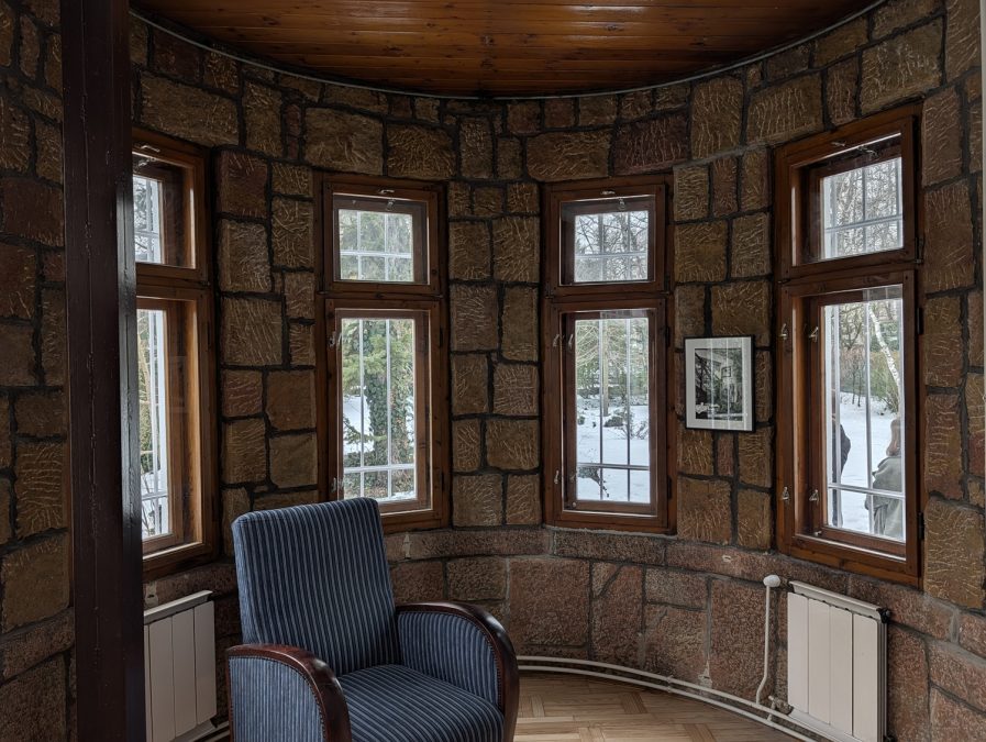 A ház még szinte teljesen üres, már nem „egy boldog nagycsalád otthona”, ahogy az örökösök által 2024 tavaszán feladott ingatlanhirdetés fogalmazott, de még nem is berendezett, élő alkotóház. Átmeneti pillanatban van két fázis között.