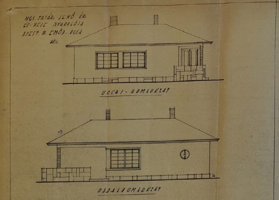 a kivitelezést végző építési vállalkozó a sződligeti Pint János volt. A házra a III. kerületi elöljáróság 1936 szeptemberében adta ki a használatba vételi engedélyt. Az építtető tehát Tatár Jenő, akiről a korabeli sajtóból még néhány morzsát összekaparhatunk: az addig beépítetlen telket Décsi Imrénétől vette meg 1934-ben 5250 pengőért (Pesti Napló); a Sárközi, Tatár és Forgács Textiltechnikai és Műszaki Kft. egyik ügyvezetője volt (a cég textilipari kellékek gyártásával foglalkozott); és az épületet időszakosan, nyaralóként használta, ugyanis a telefonkönyvekben egészen 1943-ig olvashatjuk, hogy az V. kerületi Falk Miksa utcában lakott, nyáron viszont állandóan az Emőd utcában keresendő.