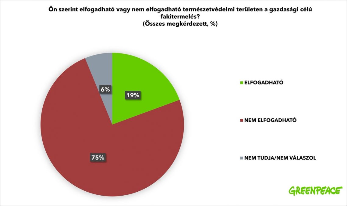 - Az emberek háromnegyede szerint nem elfogadható, hogy gazdasági célú fakitermelés zajlik a védett területeken; és kevesebb mint 20 százalék tartja ezt helyesnek.