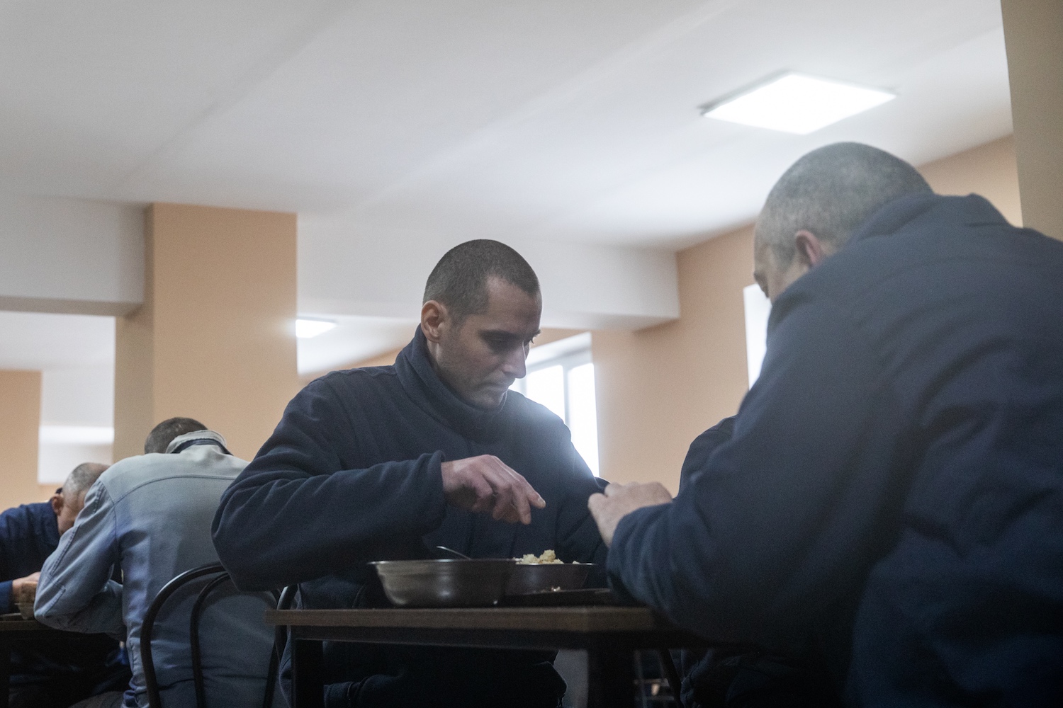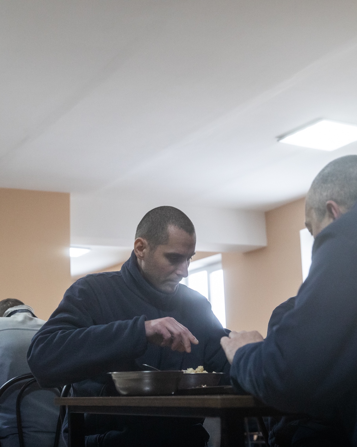 Egy ideje ugyanis itt tartják fogva az összes nem orosz állampolgár katonát, akiket az ukránok elkapnak. A pontos számukat nem tudjuk, csak annyit, hogy az ebédet négy váltásban szervírozzák – egy váltás pedig legfeljebb 140 fő. Közép-ázsiaiak, törökök, kaukázusiak, moldávok, Doneck és Luhanszk megye megszállt részeiről valók. Meg egy szlovák és egy olasz. Hogy kerültek ide? Mi motiválta őket, hogy berukkoljanak az orosz hadseregbe? Hogyan estek fogságba? Tolulnak bennünk a kérdések, amíg az egyik különszobában várjuk őket. Végül felsorakoznak a szoba előtti folyosón.