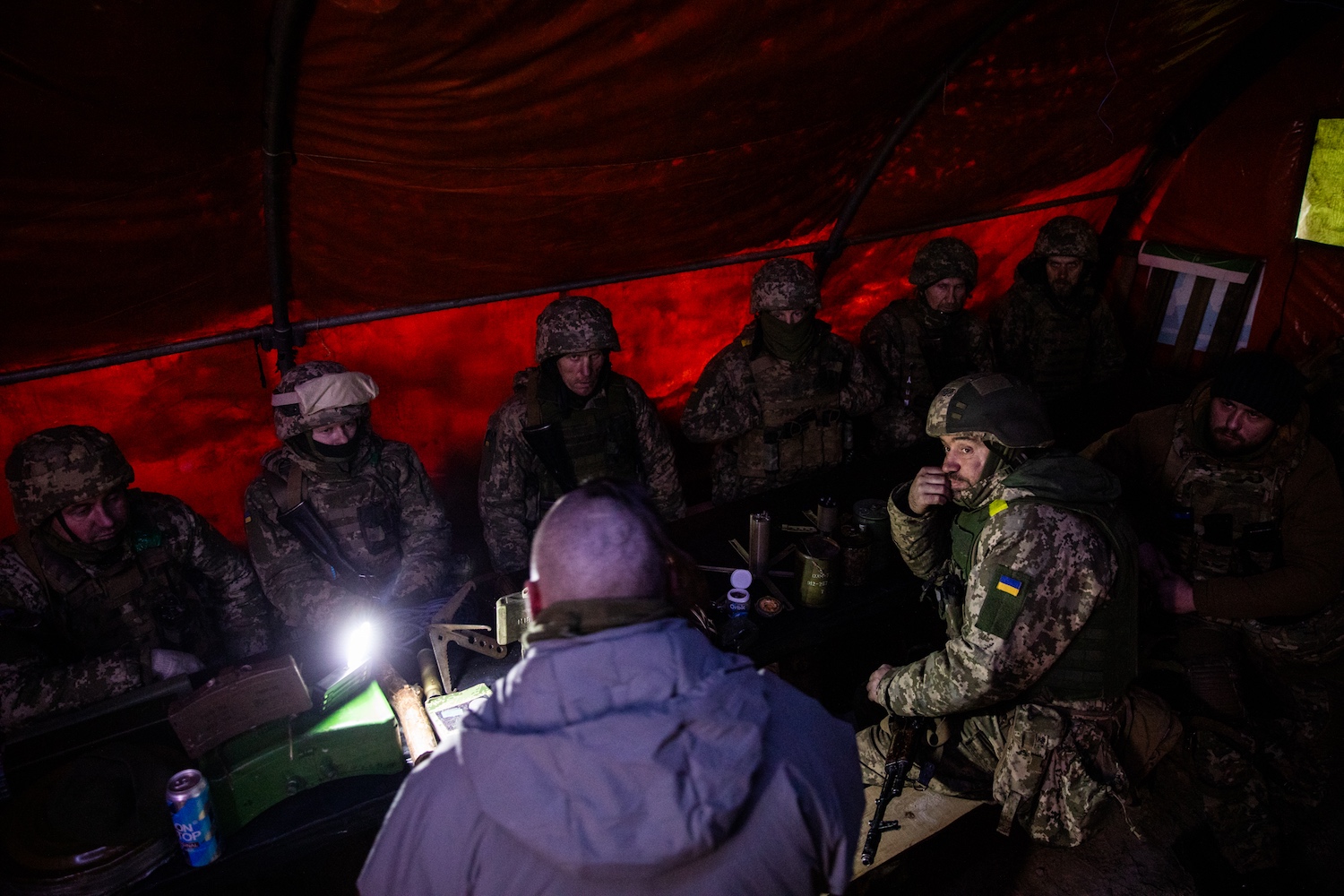 Az ukrán hadsereg 57. gépesített dandárjának gyalogosai erről néhány héttel az után szereznek első kézből tapasztalatot, hogy január végén meglátogattuk egyik kiképzőtáborukat Harkiv megyében. A lábunk alatt még ropog a hó, nappal sincs több, mint mínusz 10 fok. A tábor sátrait szerencsére fűtik a vaskályhák. Először nem értjük, miért vörös-fekete a díszlet, hiszen az 57-esek színei a kék-zöld-sárga. Kiderül: a területvédelmi alakulatból létrejött 42. gépesített gyalogsági zászlóaljat – az ő két színük ez a hazafiasabb párosítás – 2025 szeptemberében az 57. dandár alárendeltségébe szervezték.