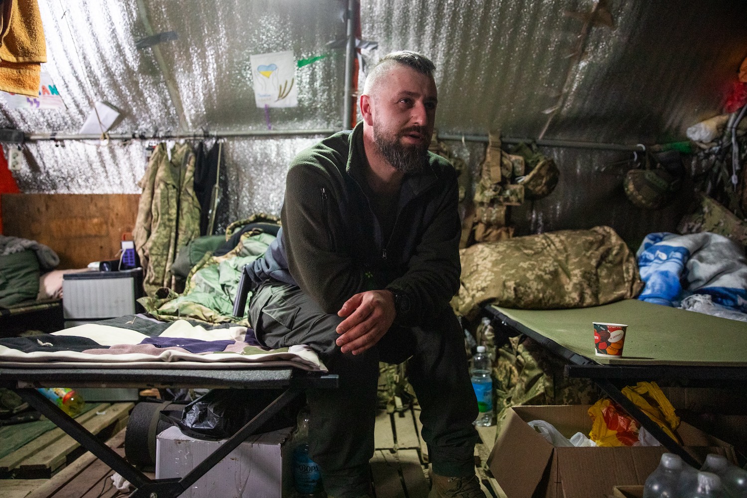 Azt is tudakoljuk, mennyit mondanak el a gyalogosoknak abból, ami rájuk vár – az 57. dandár katonái esetében a vovcsanszki fronton: „Általánosságban készítjük fel őket. Azt mondom el nekik, amivel nagy valószínűséggel találkozni fognak. A Maldív-szigetekről tehát ilyenkor nincs szó. Hogy milyen most a front? Korábban volt szürkezóna, most már nincs. A drónok dominálnak mindent. Erdőkben vagyunk, mélyen beásva a fedezékekbe, 4-500 méterrel arrébb meg ugyanígy az ellenség. A mi pozícióinkat ellenséges drónok támadják, a mi drónjaink meg az ő pozícióikat. Az a feladatunk, hogy feltartsuk az ellenséget. Hogy meddig? Azt nem tudom. Csak azt, hogy ez még nagyon-nagyon sokáig fog tartani.”