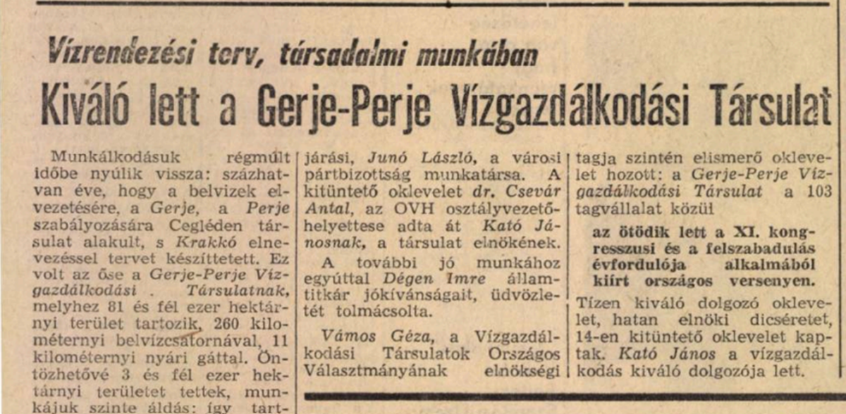 Ma már nehéz elképzelni, de a 20. században aztán többször jeges ár vonult le a Gerjén, a 40-es években Cegléden a város mélyebben fekvő területeit el is öntötte. Volt, hogy egy hatalmas jégdugót robbantással kellett kimozdítani a helyéről. Utoljára a 60-as években történt hasonló, a területileg érdekelt állami és szövetkezeti gazdaságok létre is hozták a Gerje–Perje Vízgazdálkodási Társulatot azzal a feladattal, hogy minél többet vezessenek el a „káros belvizekből”, mégpedig a mezőgazdaságilag művelt területek érdekében. A tervet, mondhatni, túlteljesítették: egy korabeli összeírás szerint 110 kilométernyi másodrendű és 196 kilométernyi harmadrendű belvízcsatornát építettek a Gerje–Perje vonalához. Ezeknek kulcsszerepe volt a környék majdnem tökéletes kiszárításában.